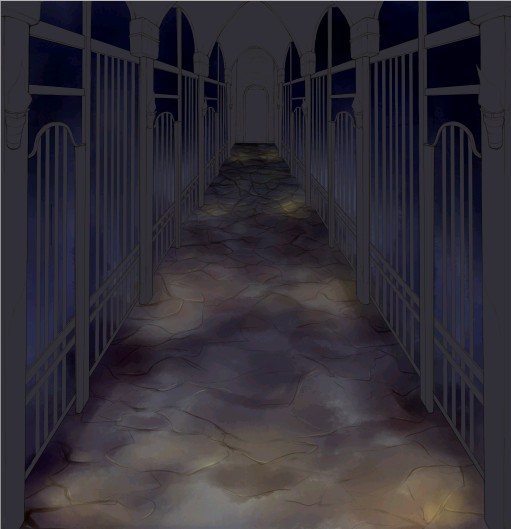 床と檻の中の色を決めて塗ります。暗い場所なので彩度・明度共に低め。