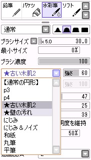 ちなみに、二つともSAIに最初から入ってる筆ですが テクスチャは別所でDLしたものです。